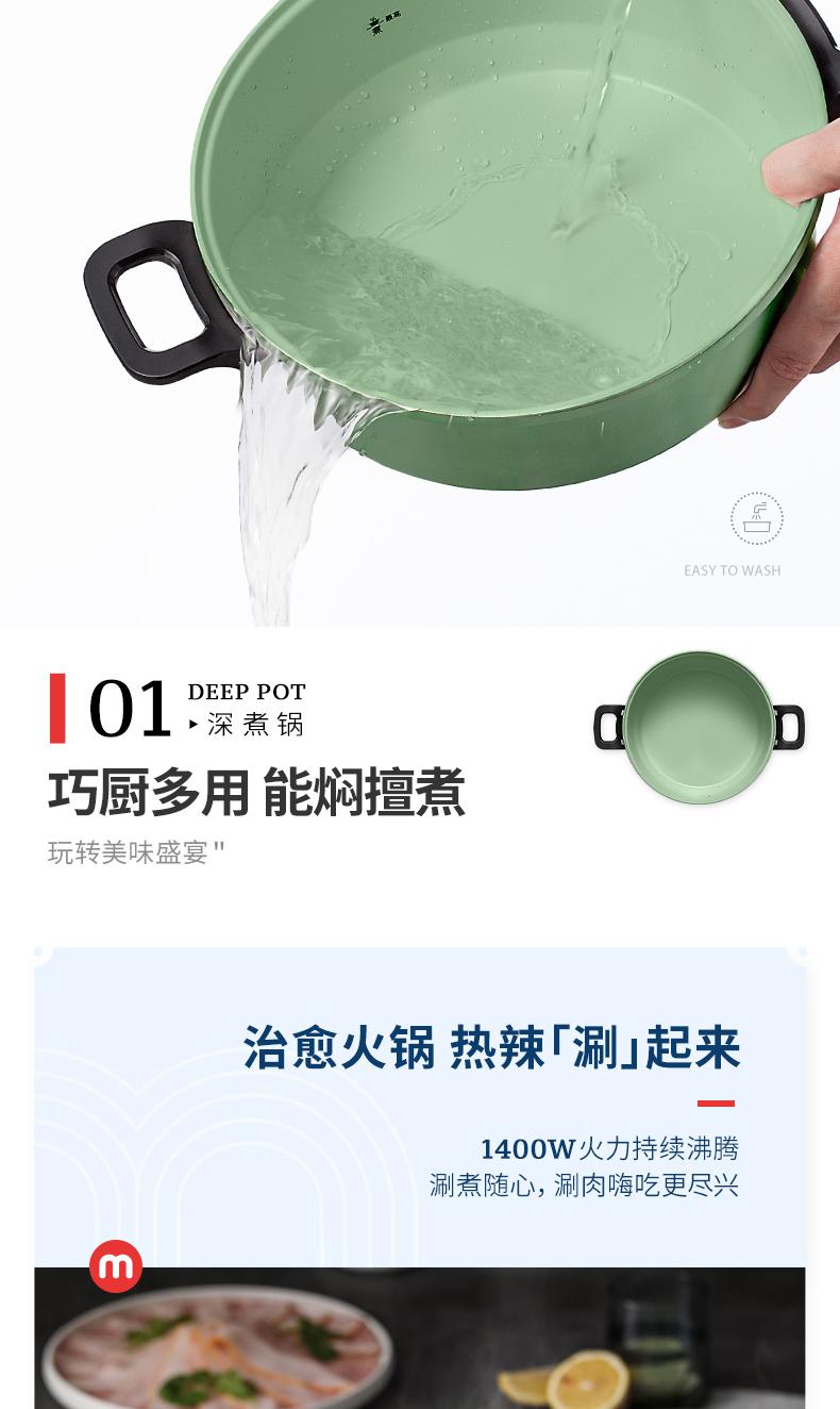 摩飞电器 MR9087 电火锅 (台)【标配:深锅】绿色