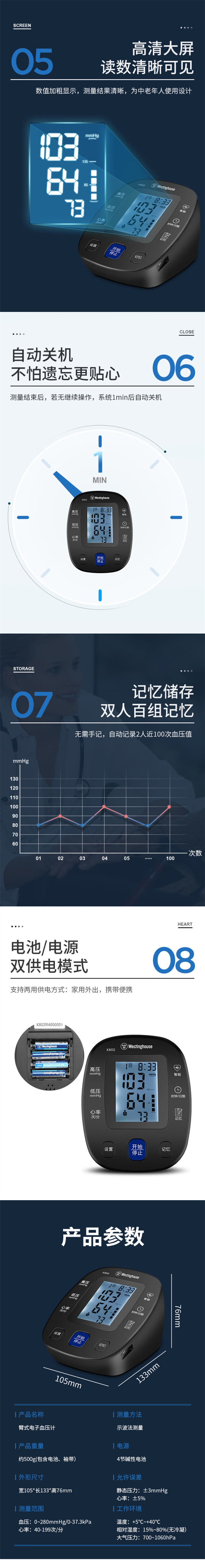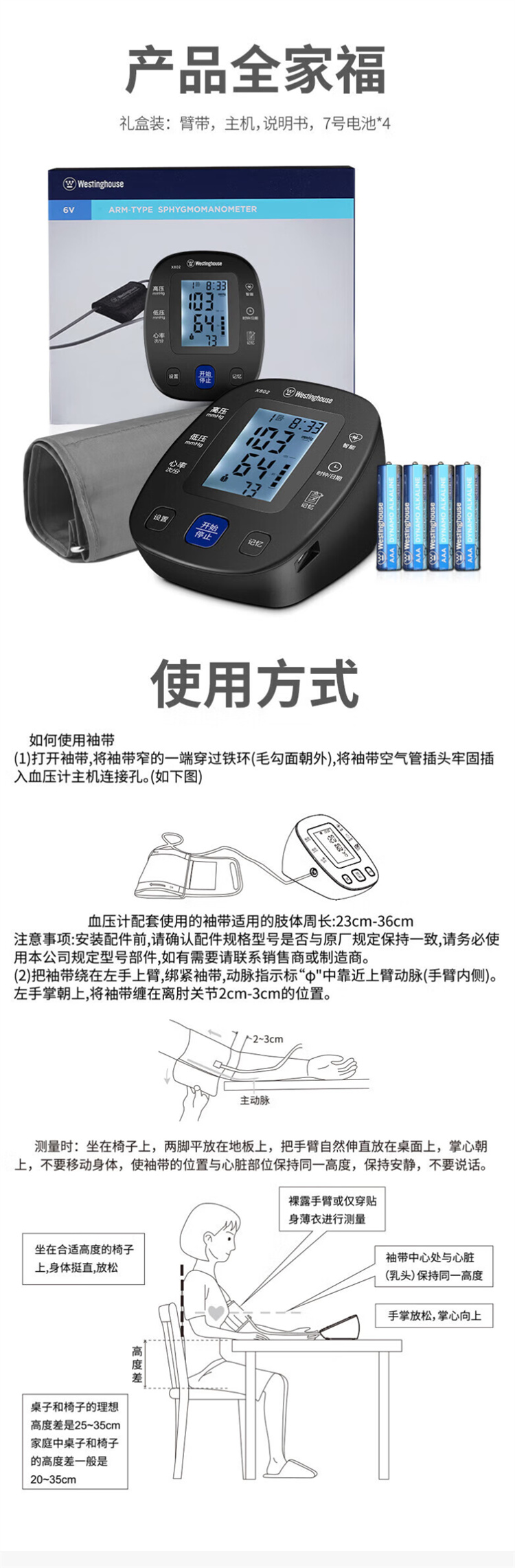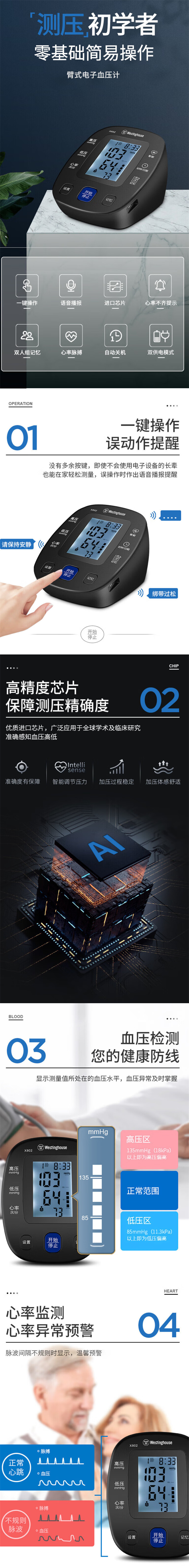 西屋电子血压计家用血压测量仪上臂式血压仪家用高精准测血压仪器测血压仪器医用级准黑色X808