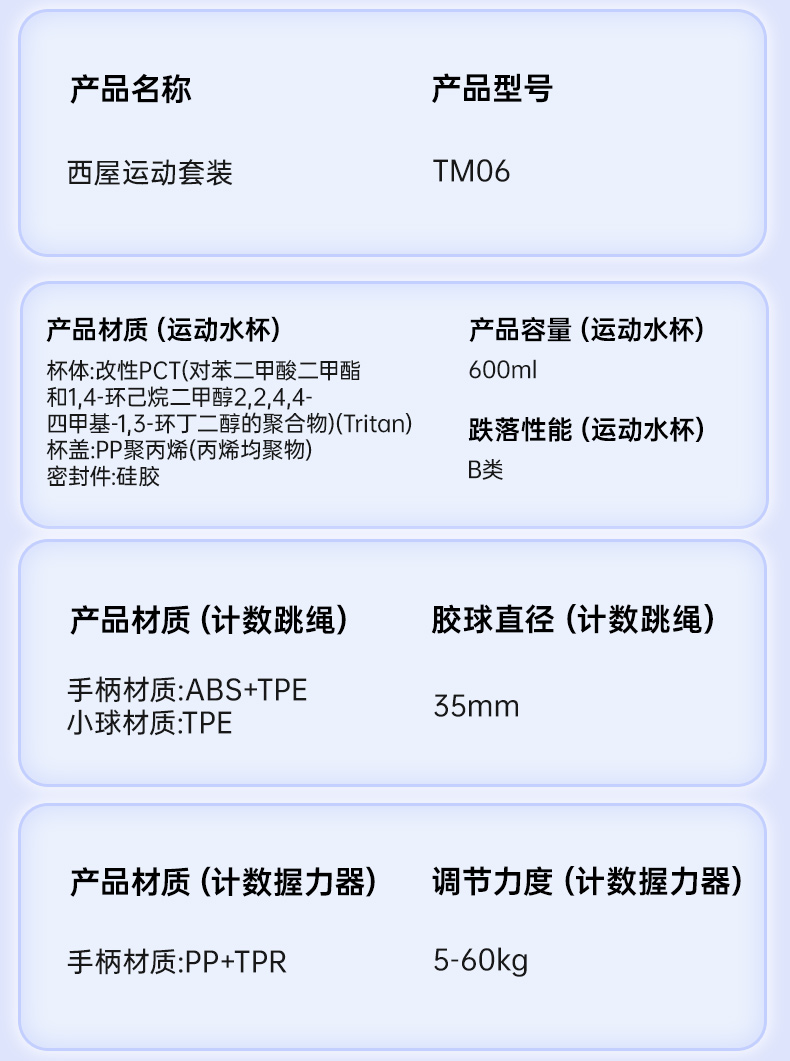 西屋运动套装(运动水杯+计数跳绳+计数握力器)TM-06