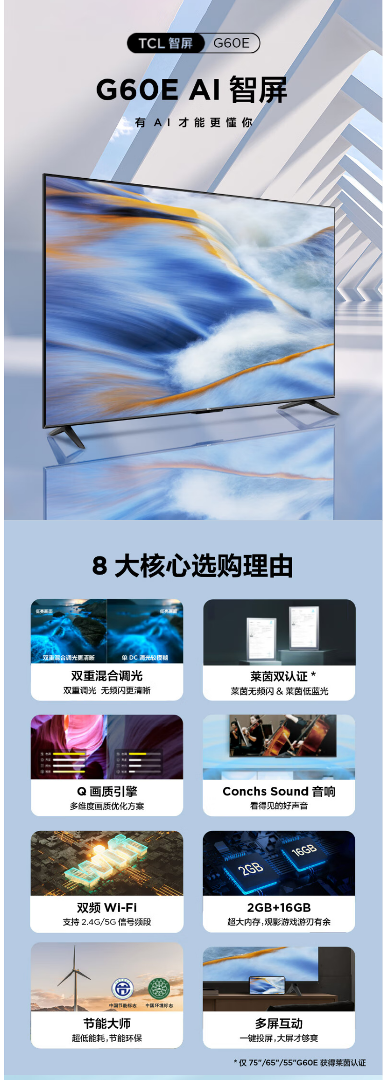 【全国联保】:整机一年,主要零部件三年 【签收注意事项】:1、产品到货时检查外包装,有破损拒收货物;2、电视产品开箱验机确保屏幕完好,若无验机签收视为产品完好 ;请注意看产品验收要点。 3、TCL客服电话4008123456。4、该产品兑换积分不包含上门安装服务费,如需上门安装服务,请拨打TCL客服电话进一步了解。