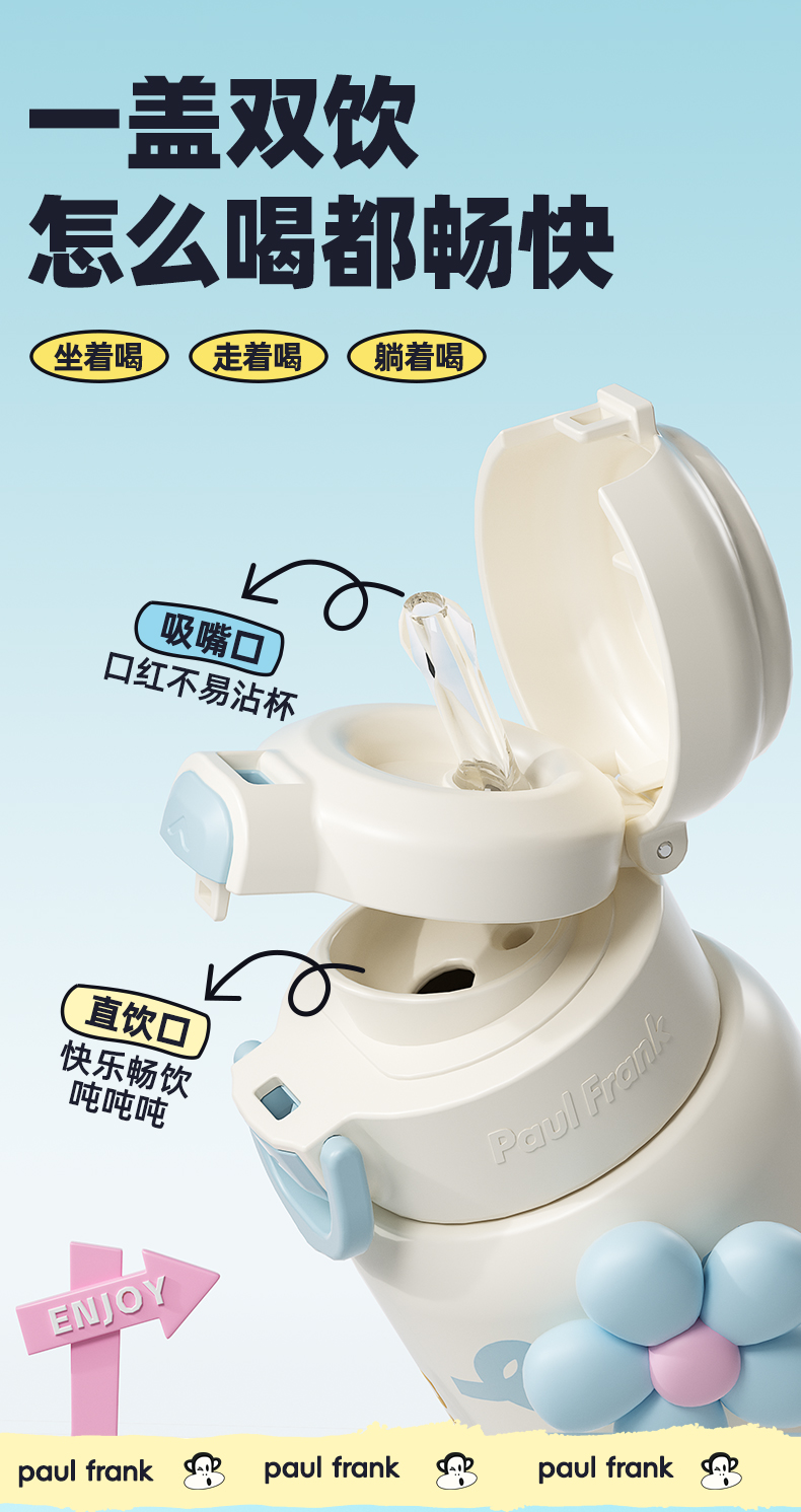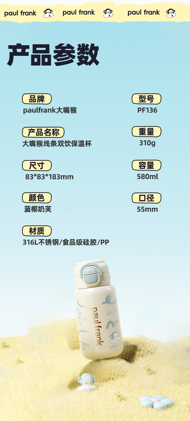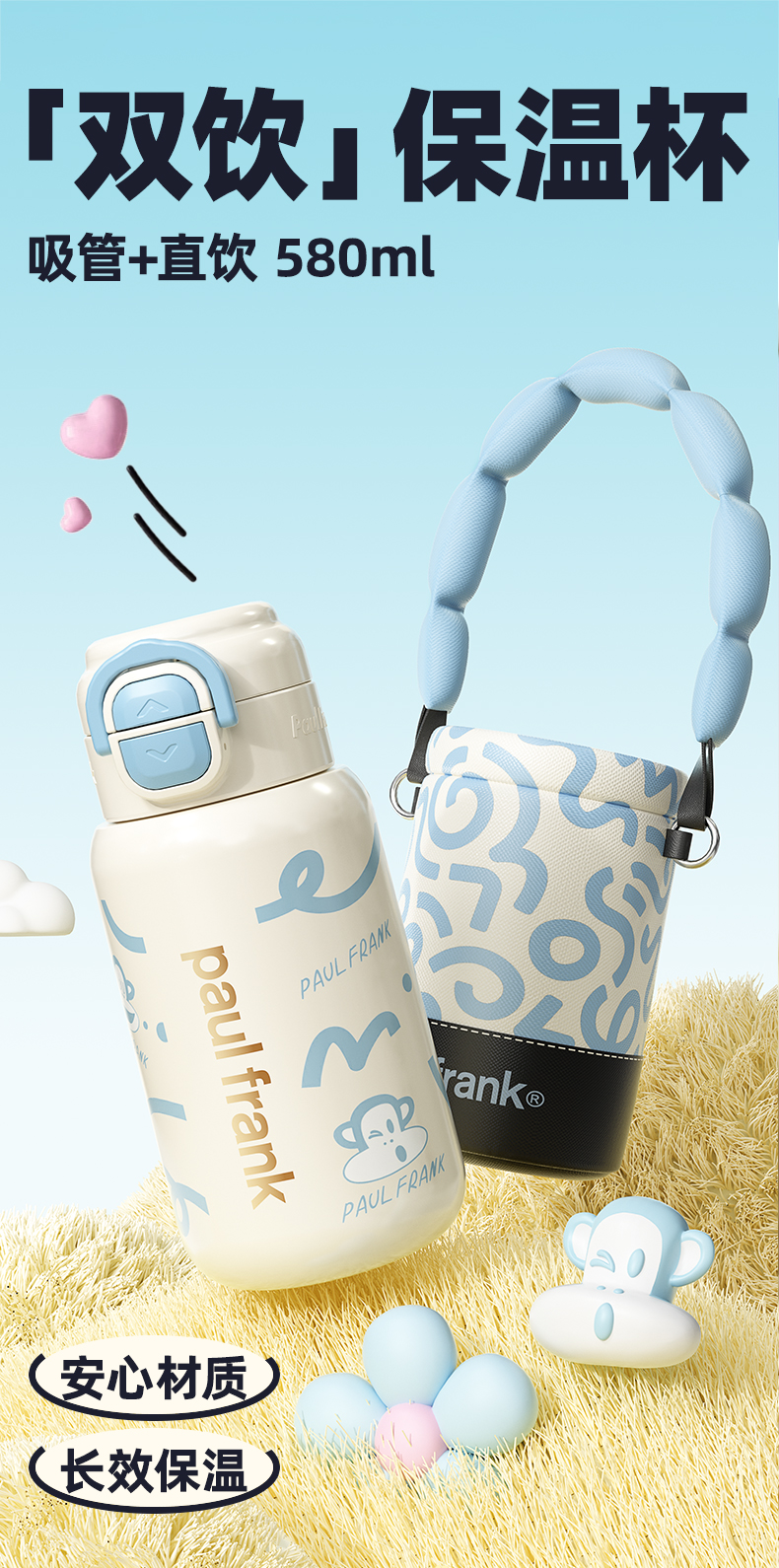 大嘴猴580ml便携杯套双饮保温杯(带杯套)PF136-580