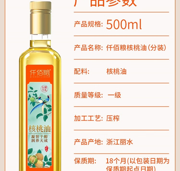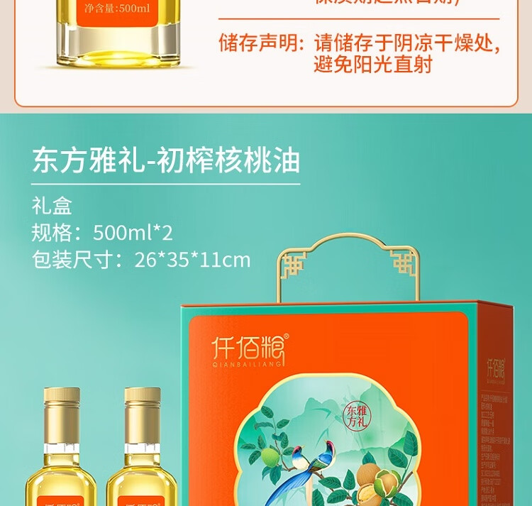 仟佰粮东方雅礼-核桃油双支礼盒500ml*2
