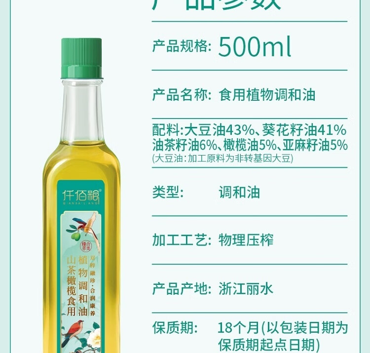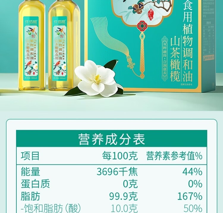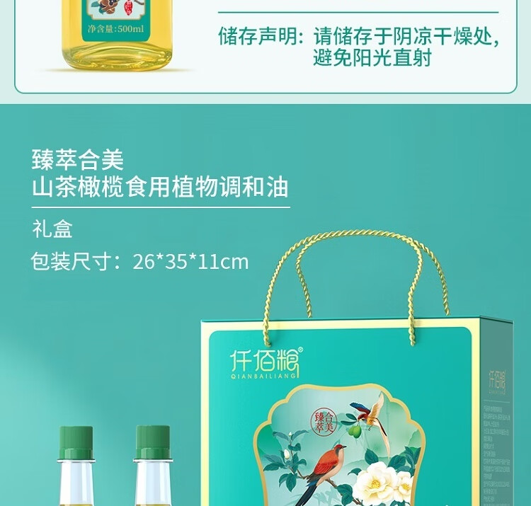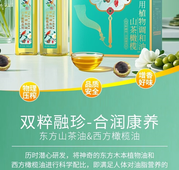 仟佰粮臻萃和美-山茶橄榄食用调和油双支礼盒500ml*2