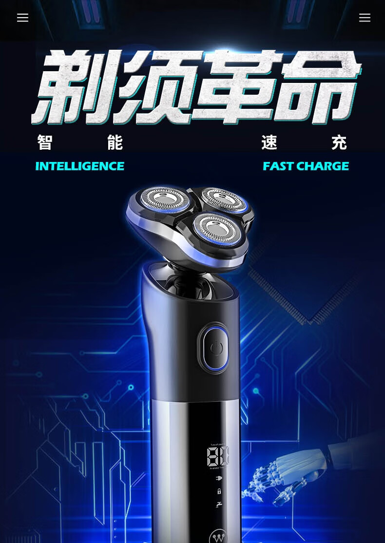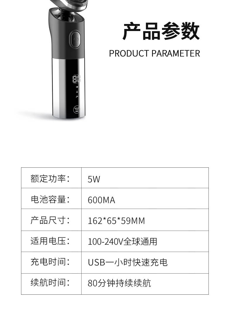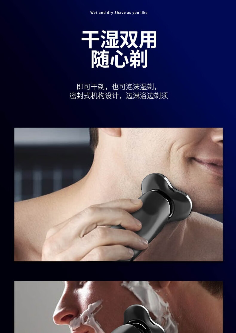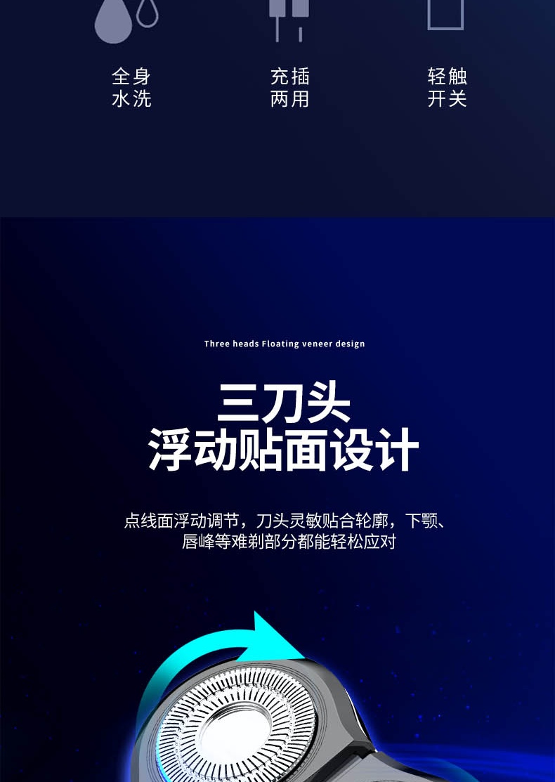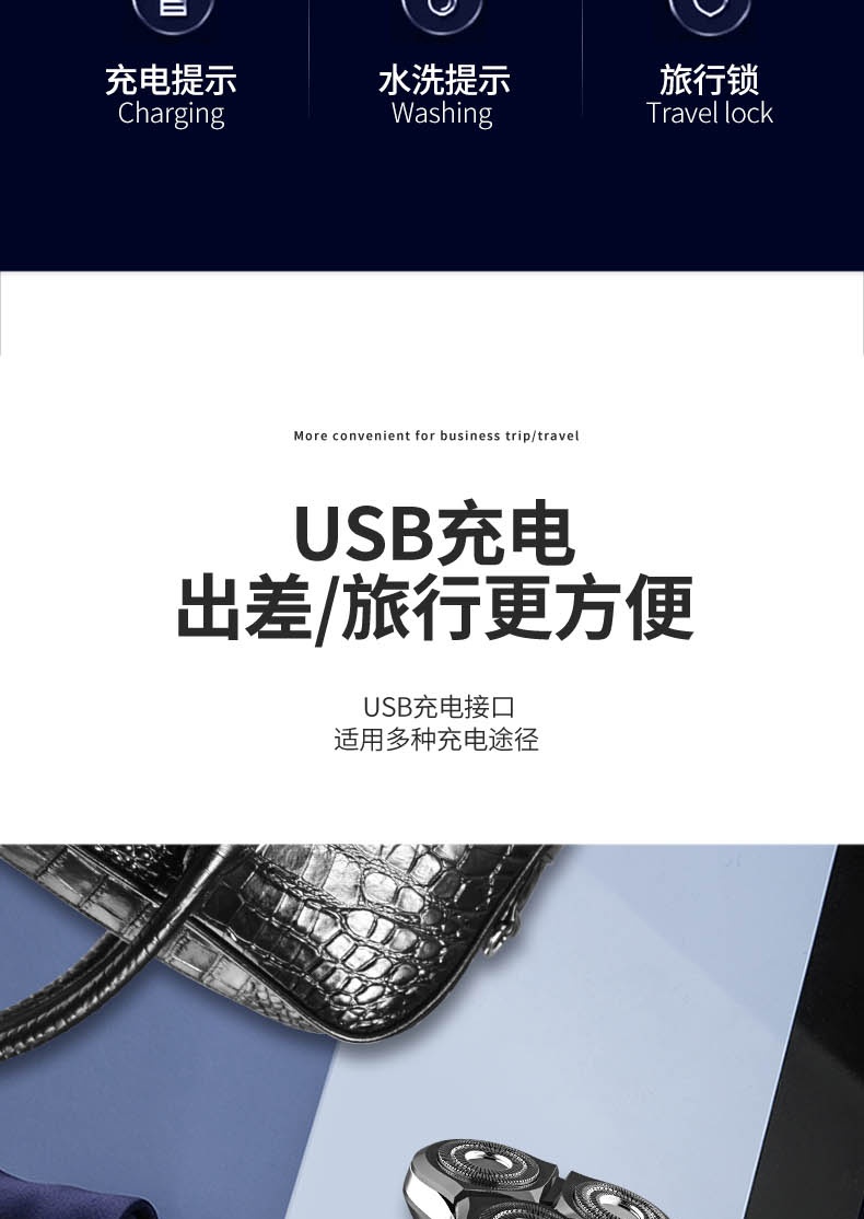 西屋电动剃须刀 原装三刀头全身水洗胡须刀 干湿两用3D剃须刀 WL-TX501