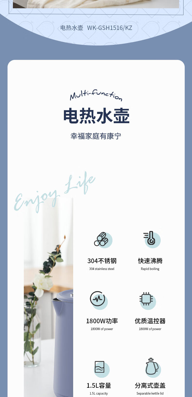 WORLD KITCHEN 康宁电热水壶WK-GSH1516/KZ电热水壶