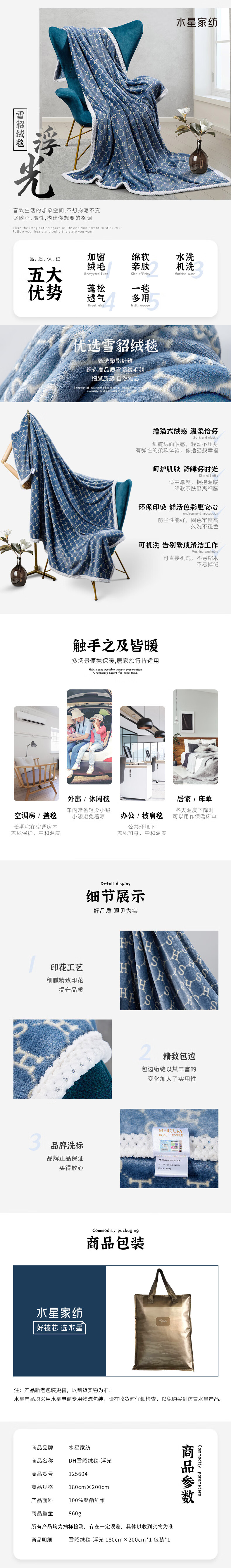 水星家纺YL浮光雪貂绒毯 125604