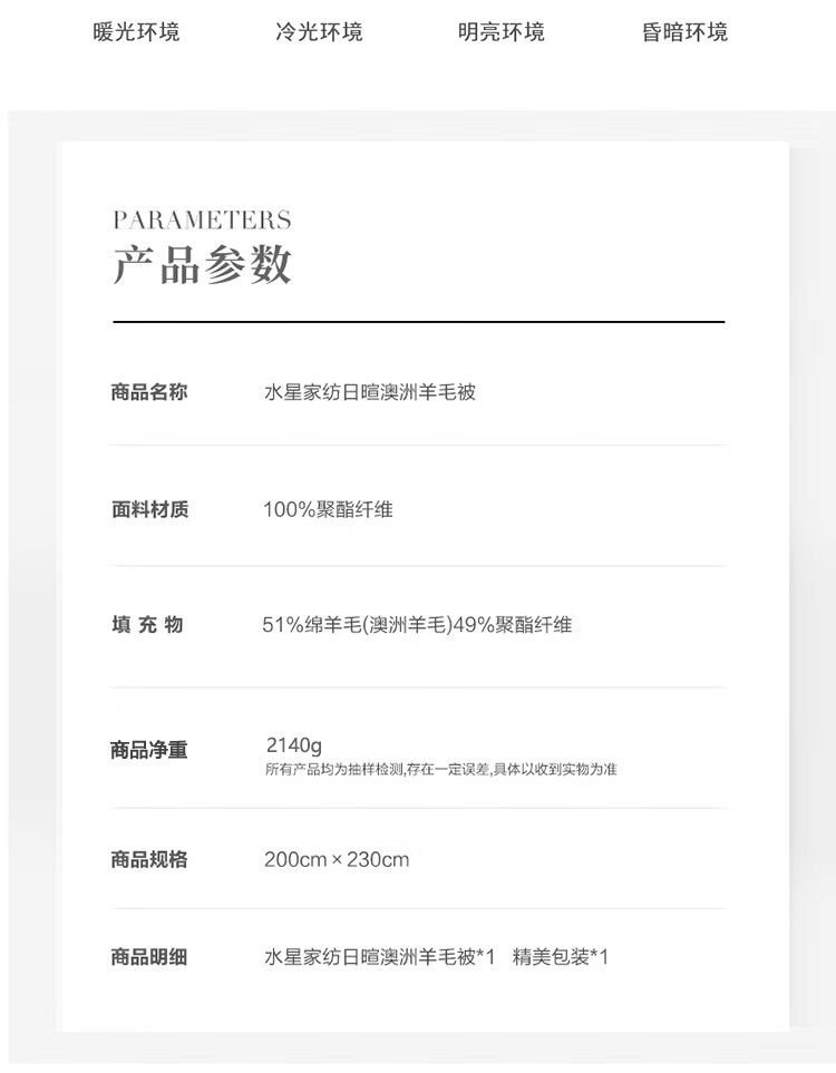 水星家纺 YL DH日暄澳洲羊毛被200cm*230cm 130538