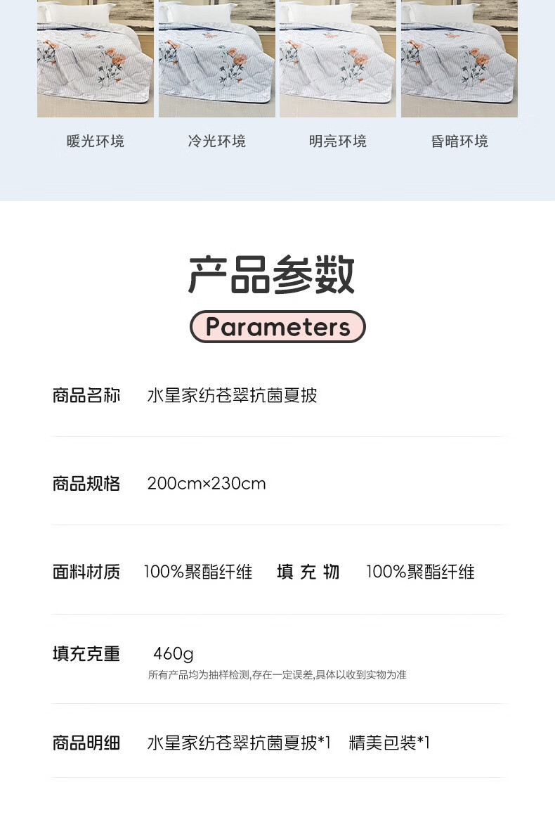 水星家纺YL DH苍翠抗菌夏被200cm*230cm 130535