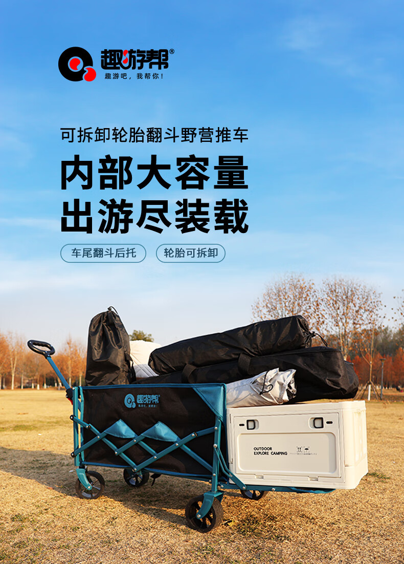 趣游帮130L可拆卸越野轮拓展野营推车(YB08)