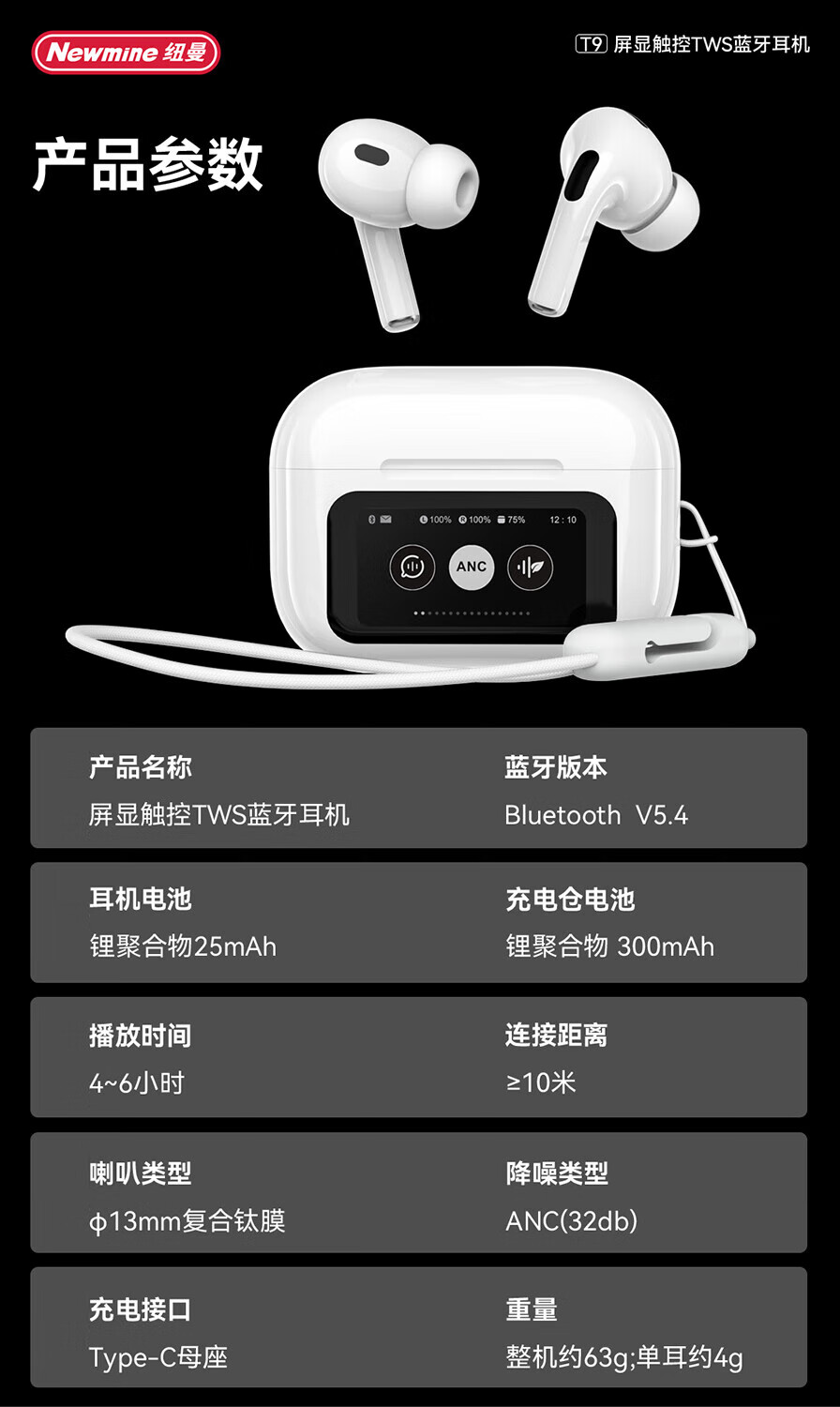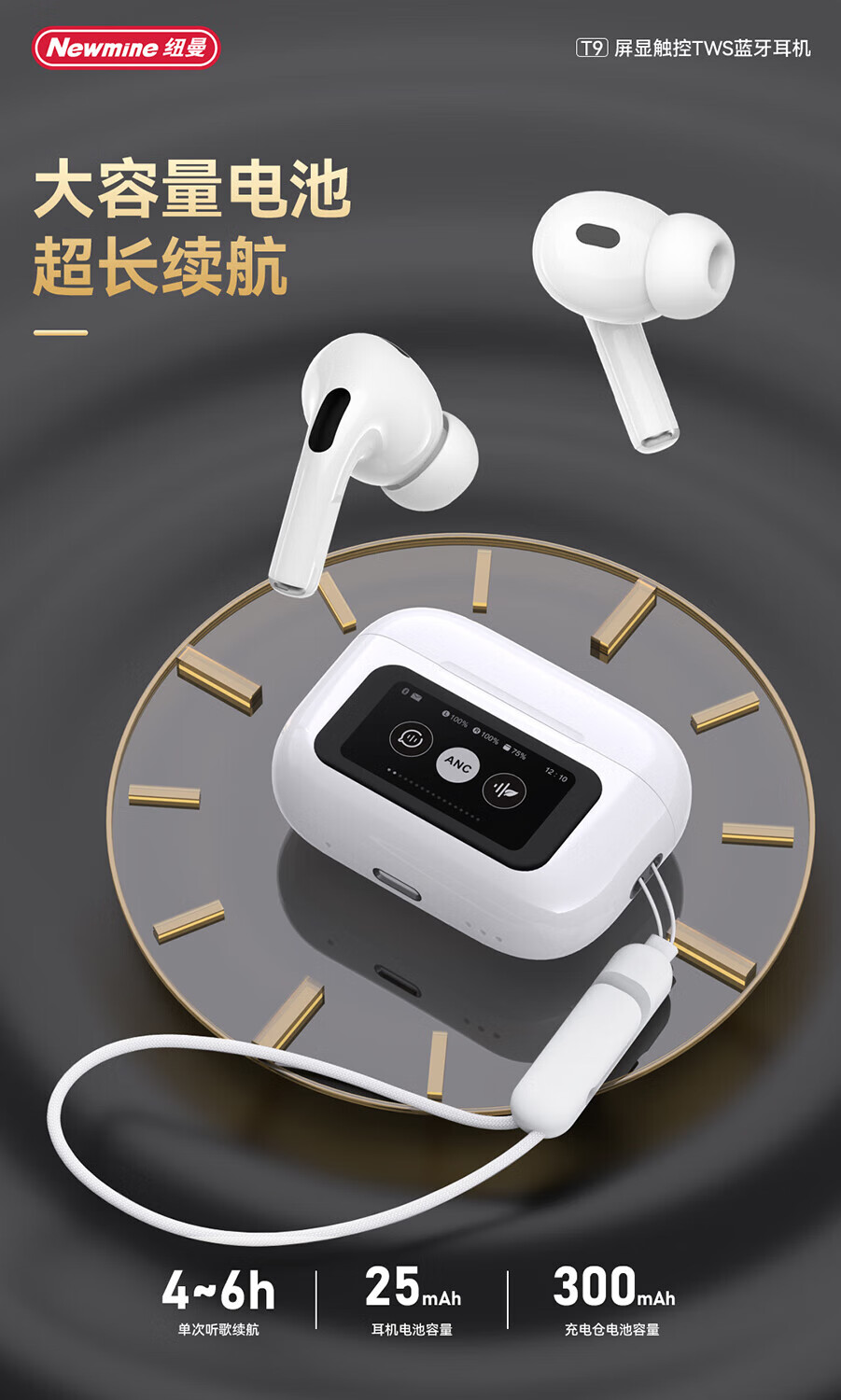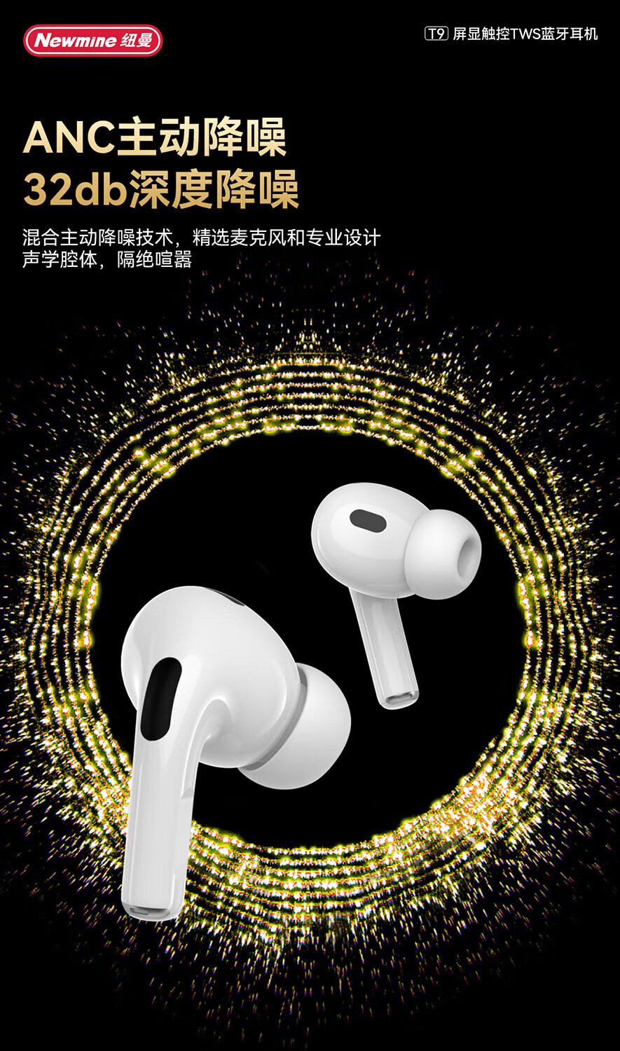 纽曼 触控屏主动降噪TWS蓝牙耳机T9