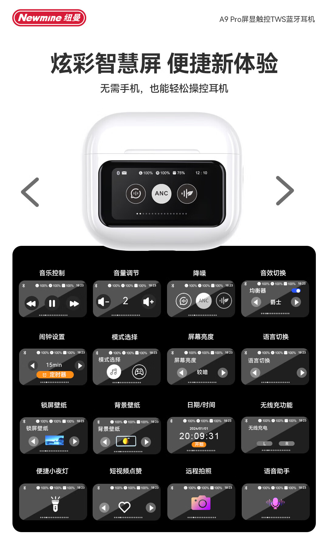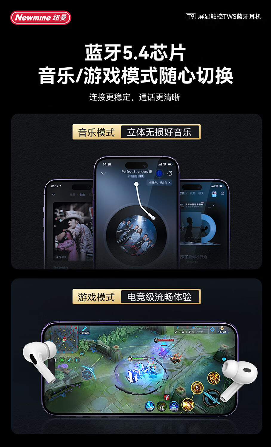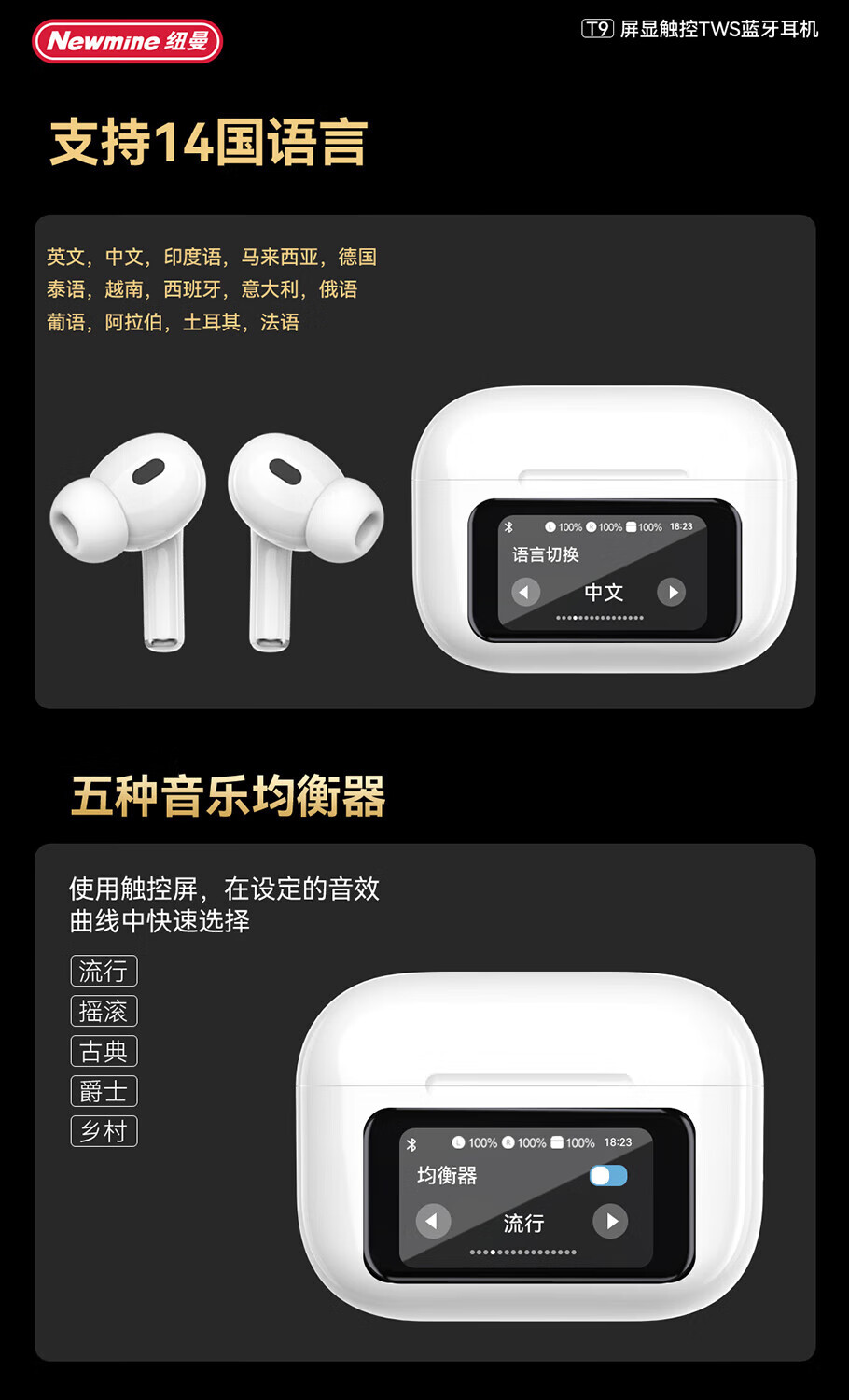 纽曼 触控屏主动降噪TWS蓝牙耳机T9