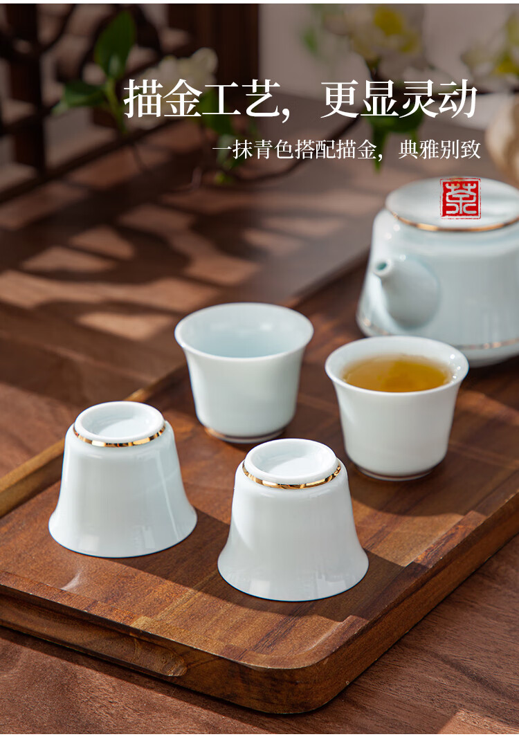 豪爱佳青瓷侧把茶具套装(9件套)HAJ-C2409