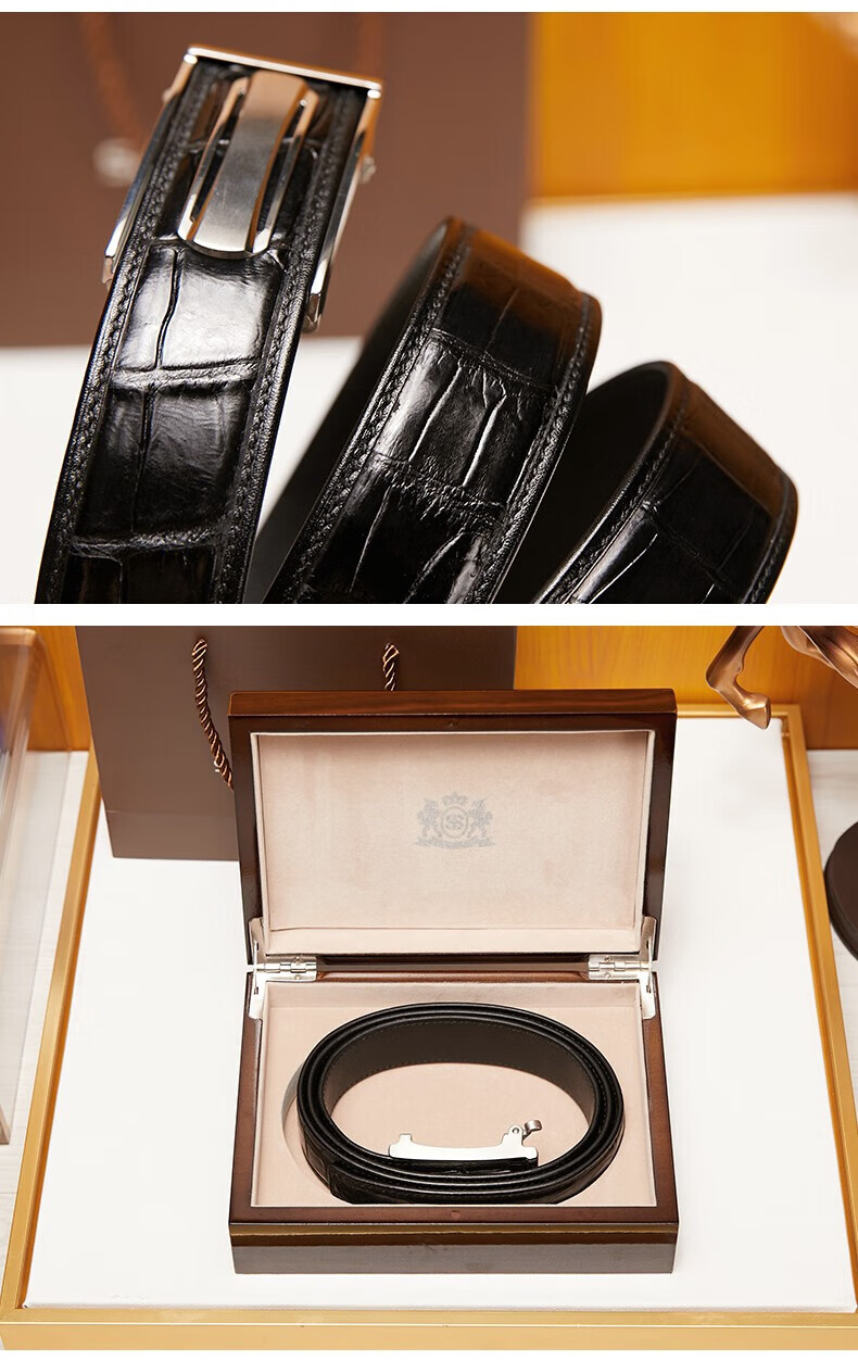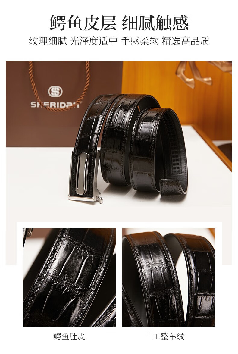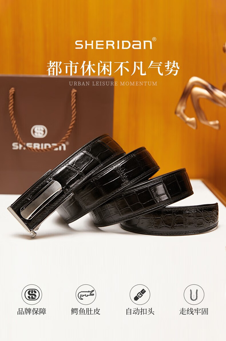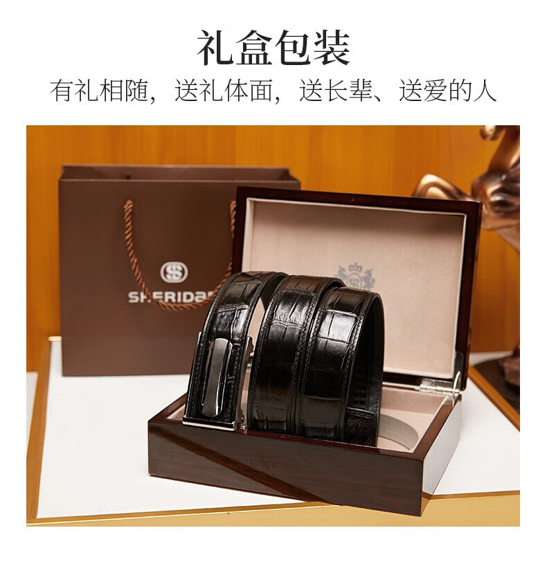 SHERIDAN喜来登男士鳄鱼皮板扣木盒装皮带NL230961S