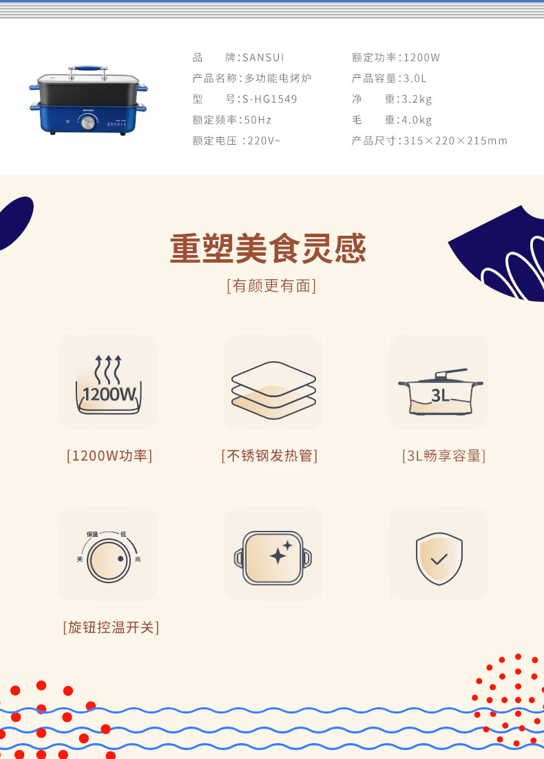 SANSUI 多功能电烤炉 S-HG1549