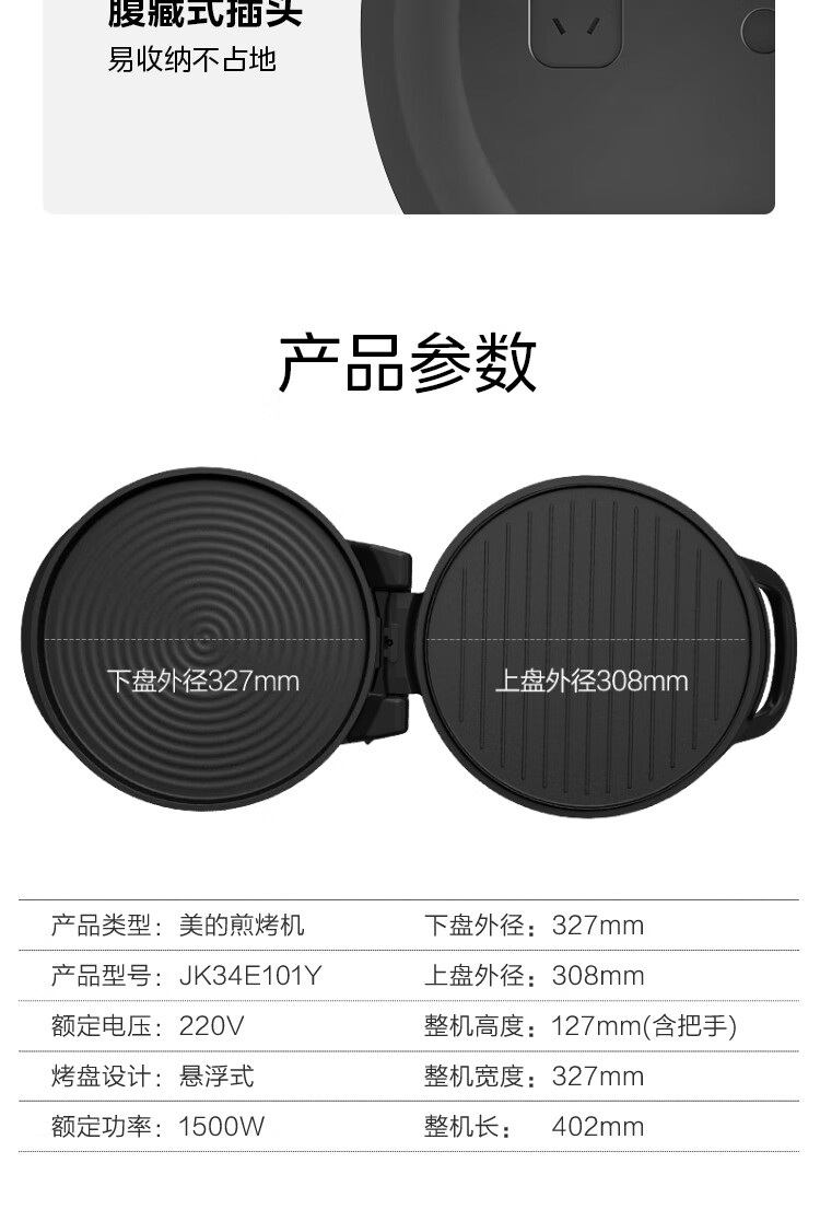 美的煎烤机JK34E101Y