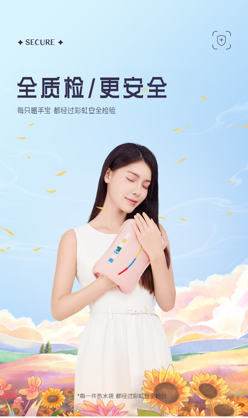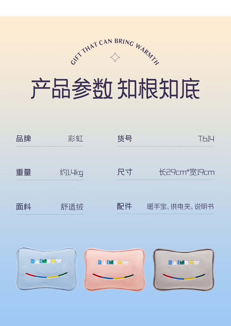 彩虹免洗加厚亲肤绒插手电热暖手宝T614-F 粉色