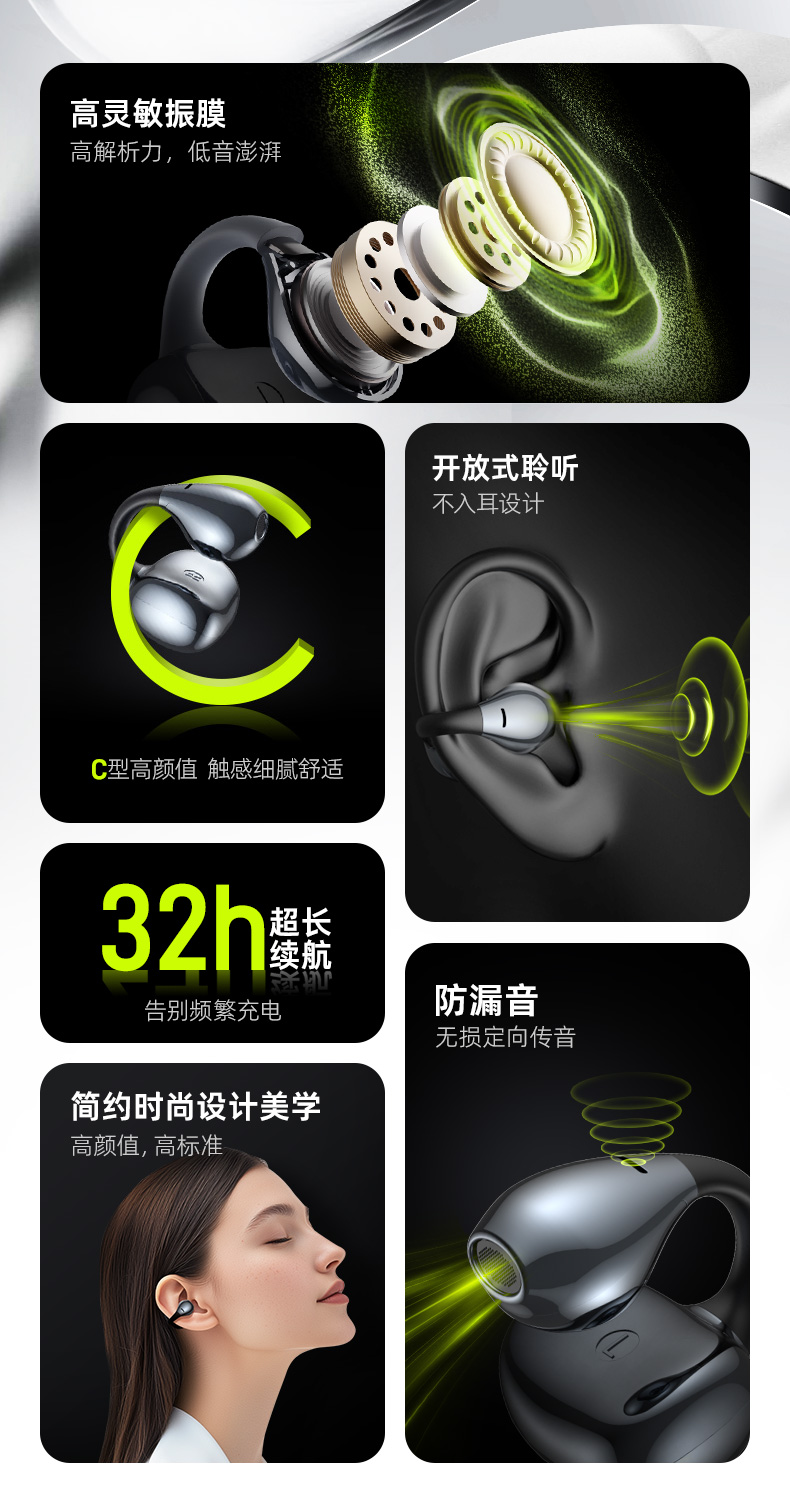 兰士顿金属感耳夹式蓝牙耳机TS20紫色