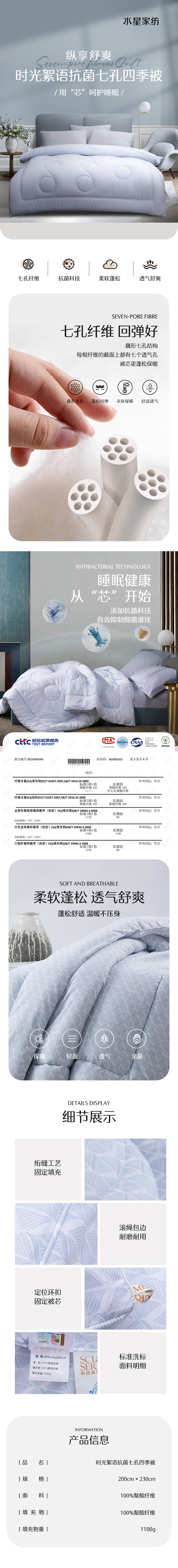 水星家纺时光絮语抗菌七孔四季被200*230cm