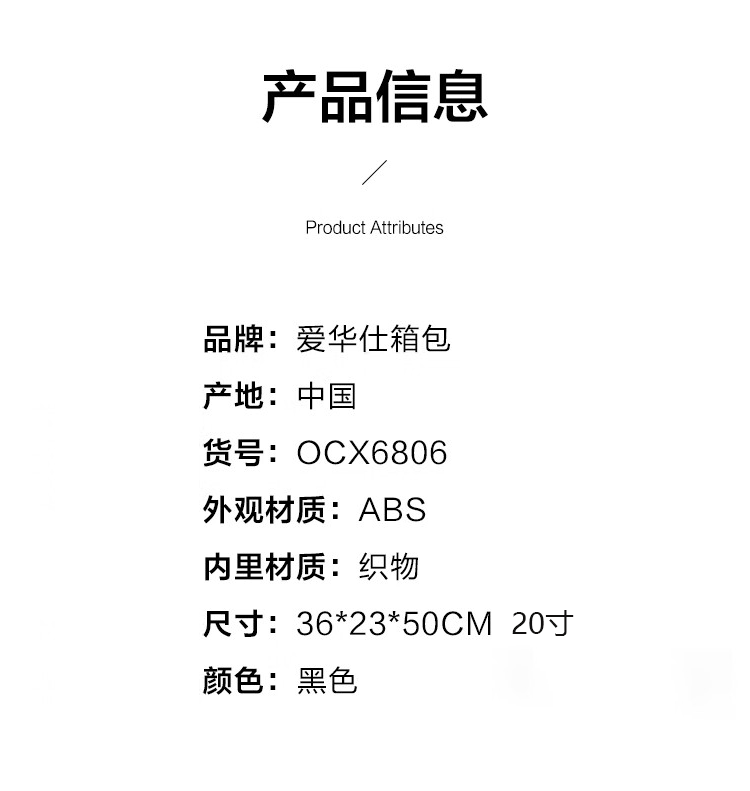 爱华仕钢铁侠系列拉杆箱OCX6806黑色