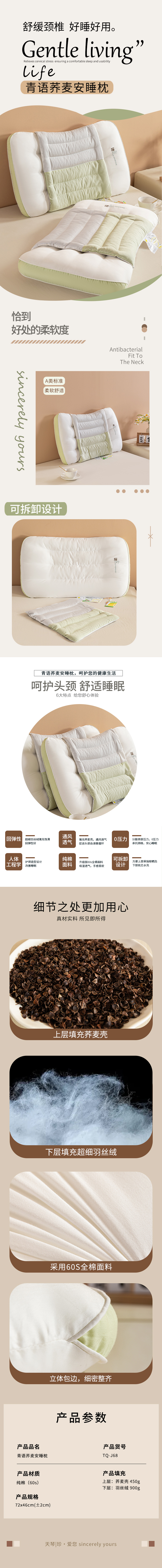 天琴青语荞麦安睡枕单个装TQ-J68(72x46cm)
