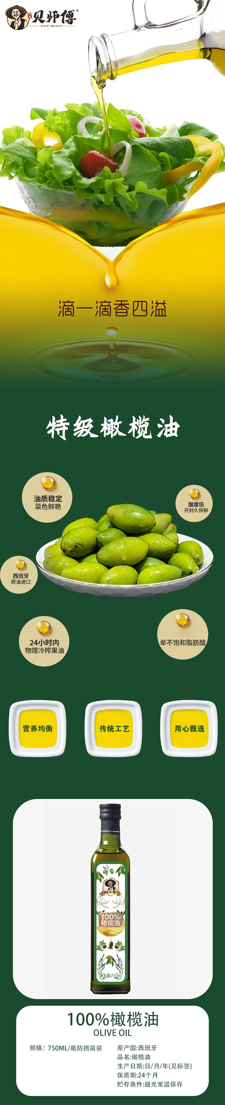 贝师傅100%橄榄油单瓶750ml/瓶