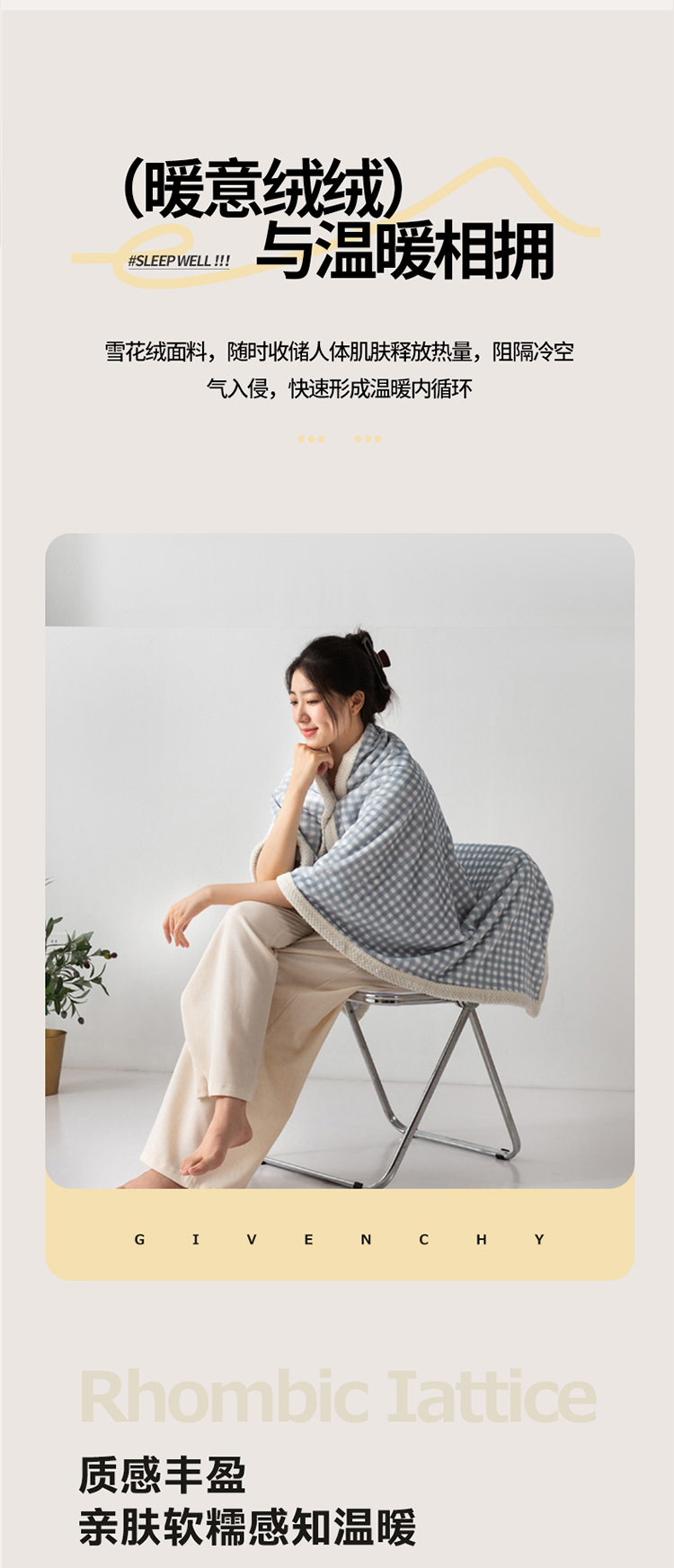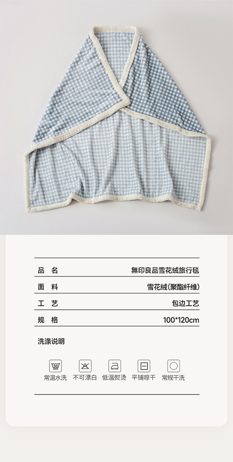 无印良品雪花绒旅行毯MJ-TZ24-01(100*120cm)