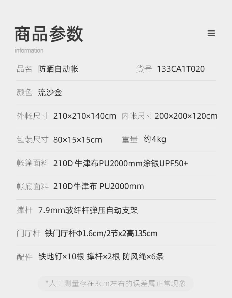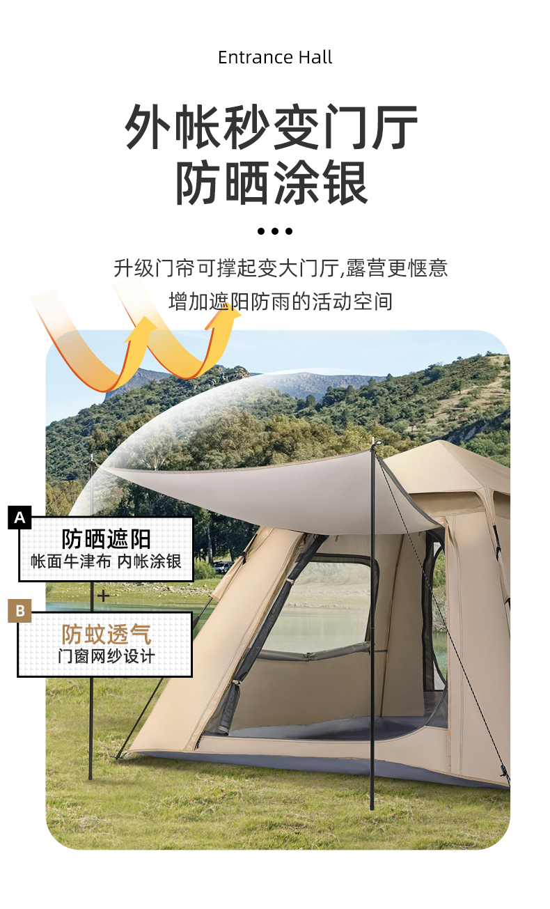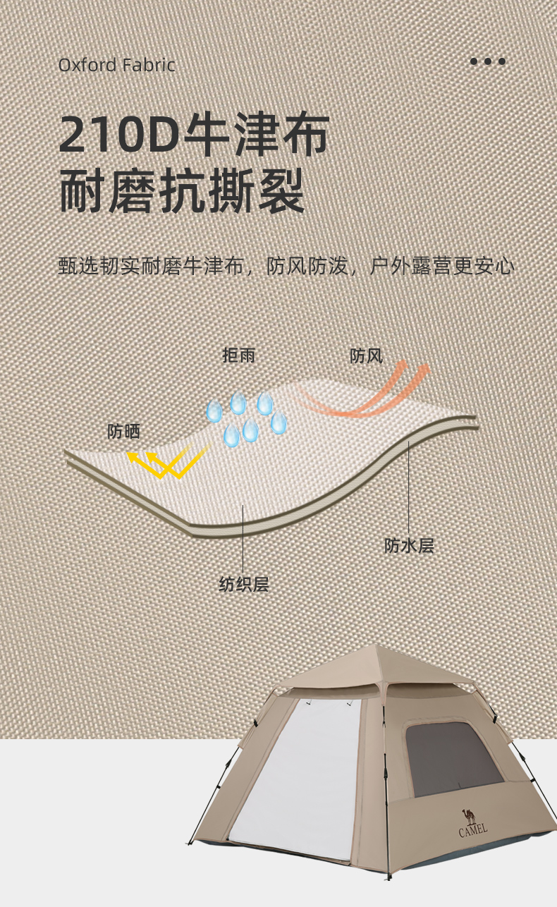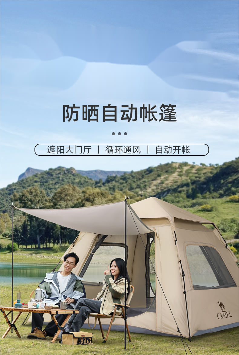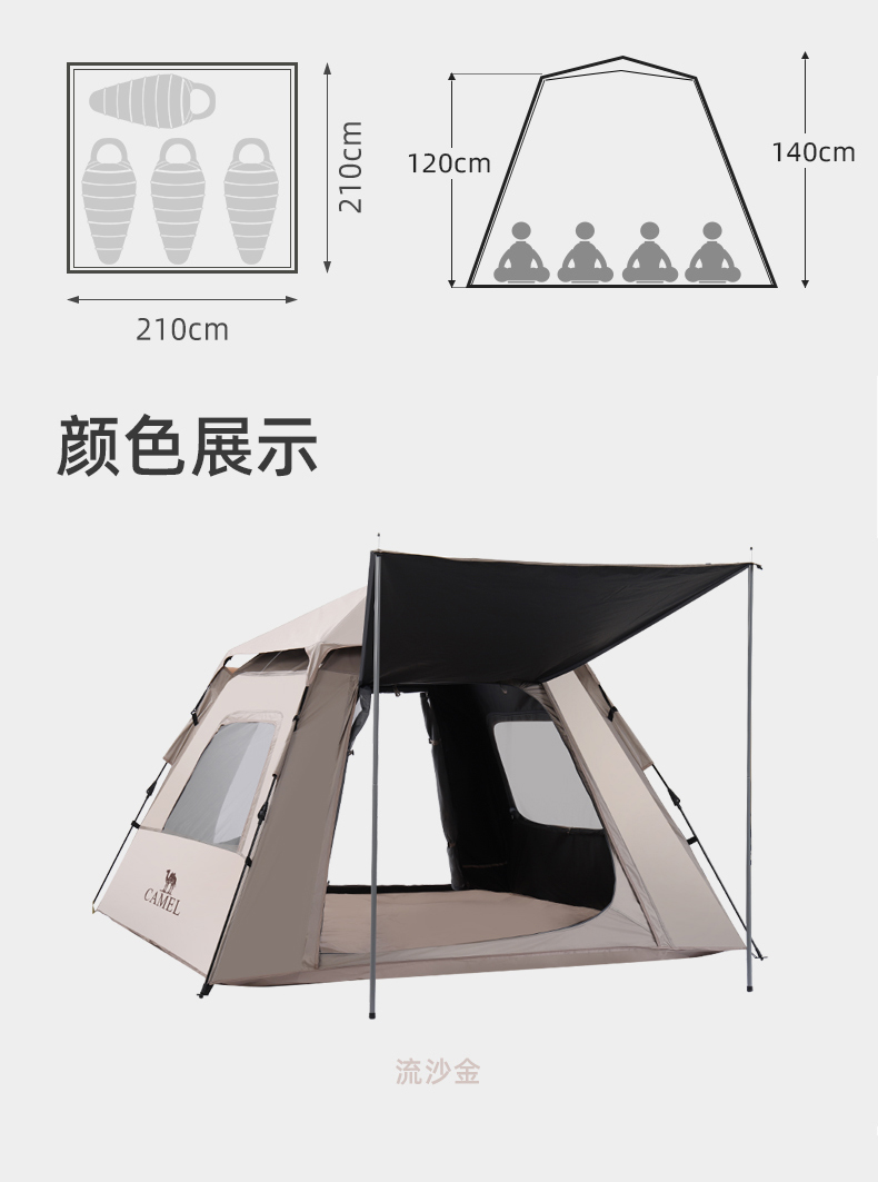 骆驼户外帐篷全自动速开帐大空间133CA1T02流沙金
