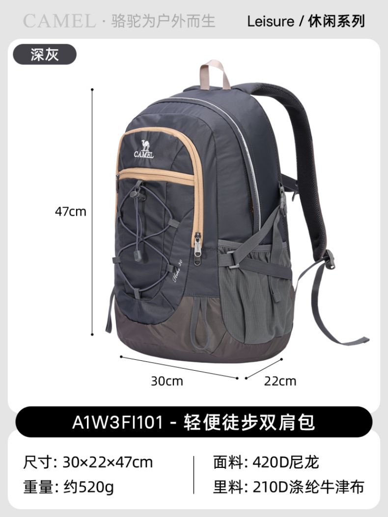 骆驼登山包轻便双肩包A1W3FI101C深灰