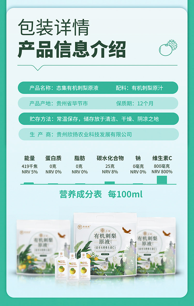 态集天然有机刺梨原液(30ml*15袋/袋)