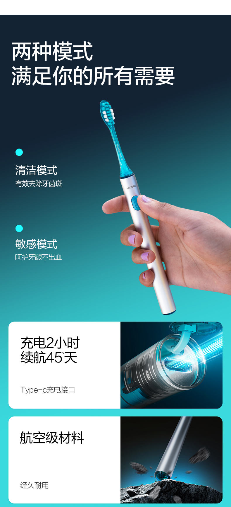 素士声波电动牙刷MT1黑色