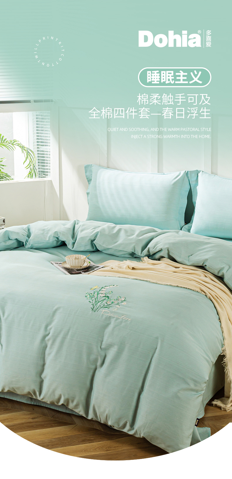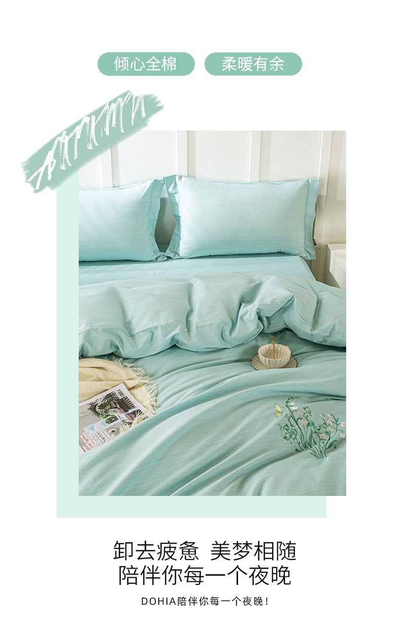 多喜爱(Dohia)100%棉(全棉)简约四件套春日浮生203*229cm