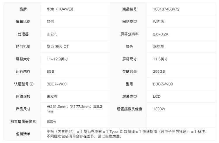 华为擎云C7(第2代)11.5"平板WIFI8GB+256GB深空灰