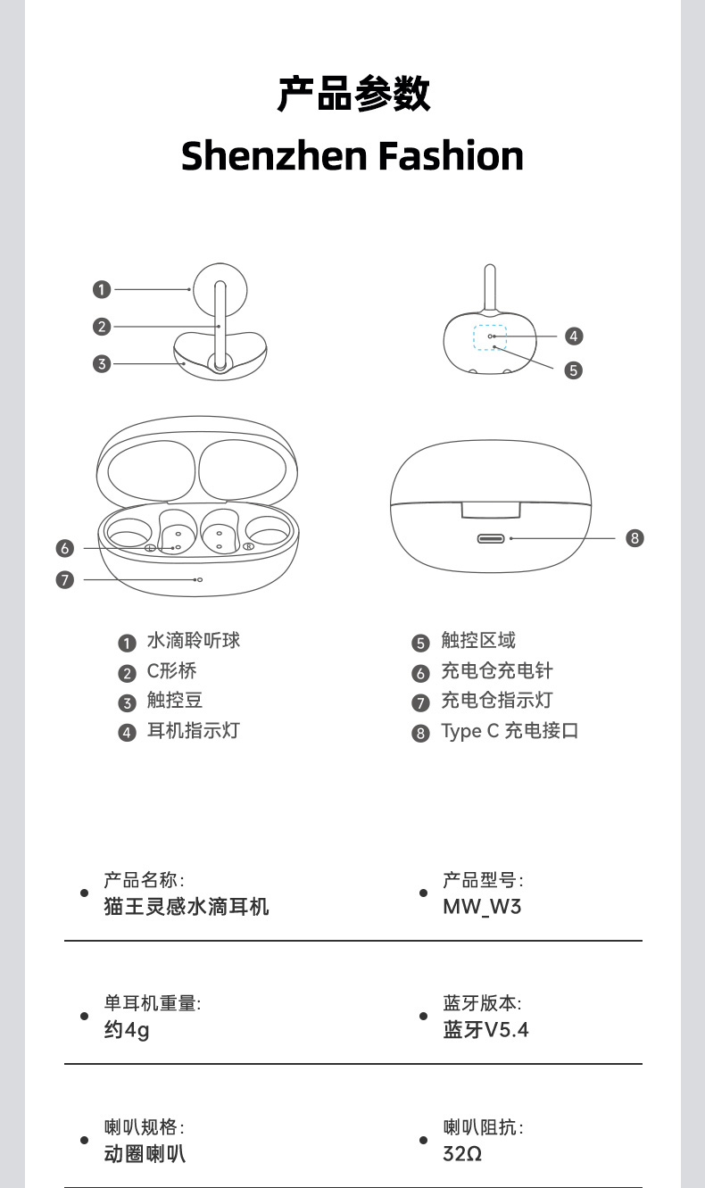 猫王灵感·水滴耳夹耳机MW-W3缎光银