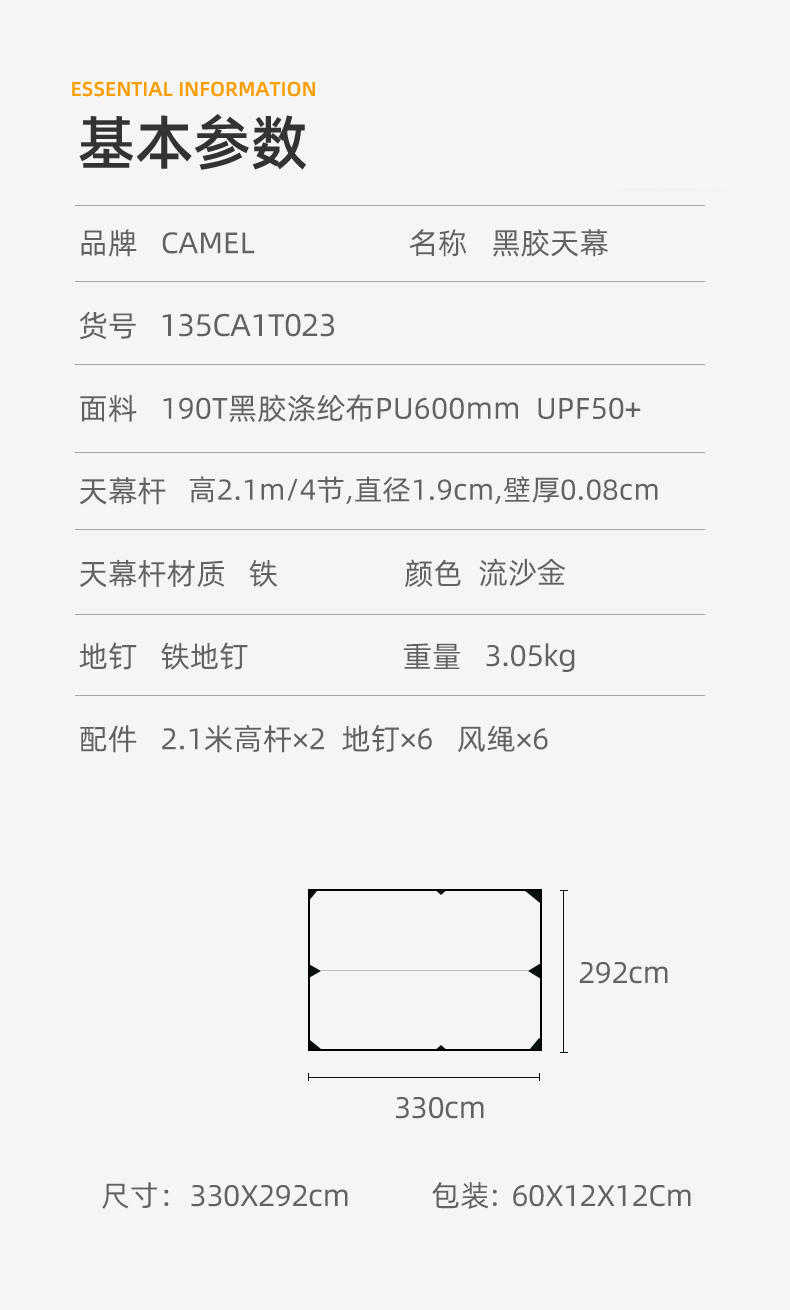 骆驼黑胶天幕135CA1T023流沙金(约6-8人)