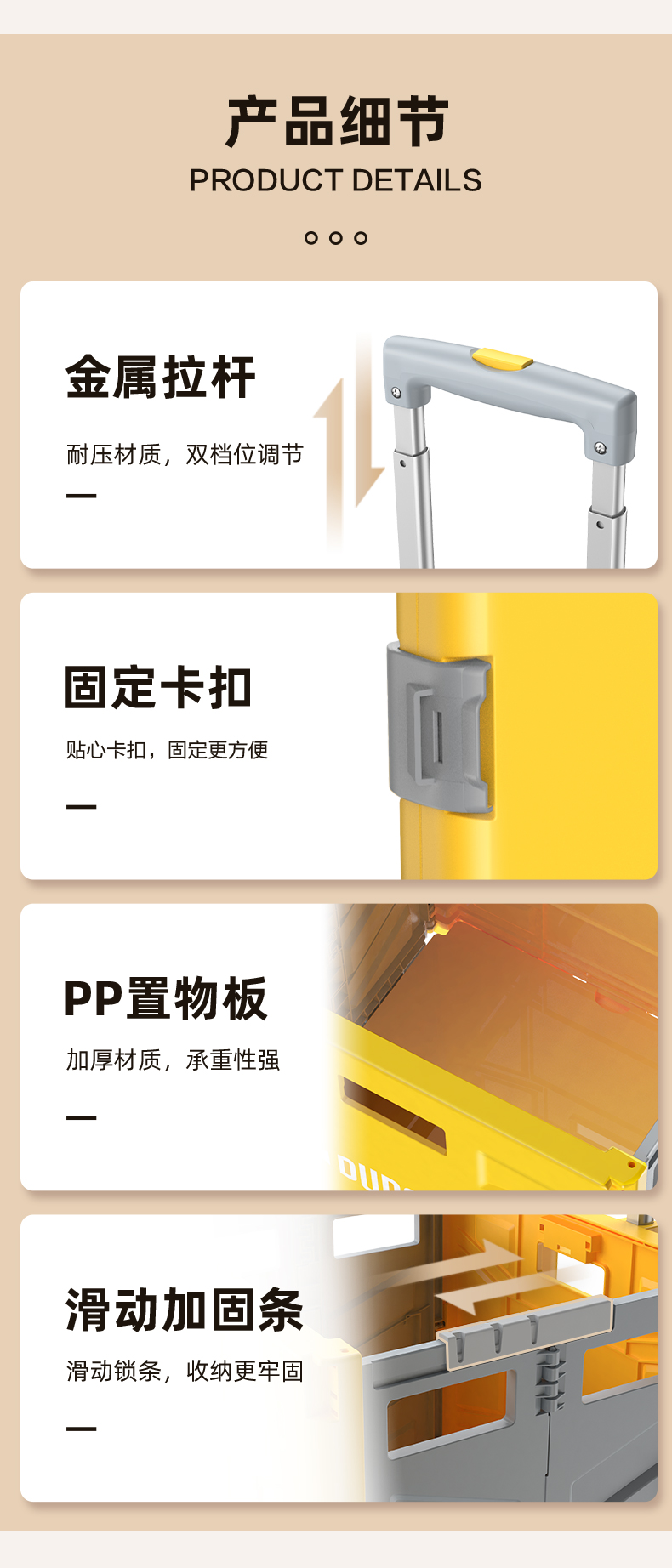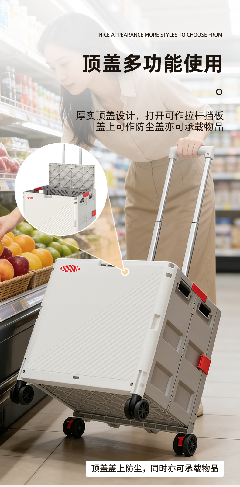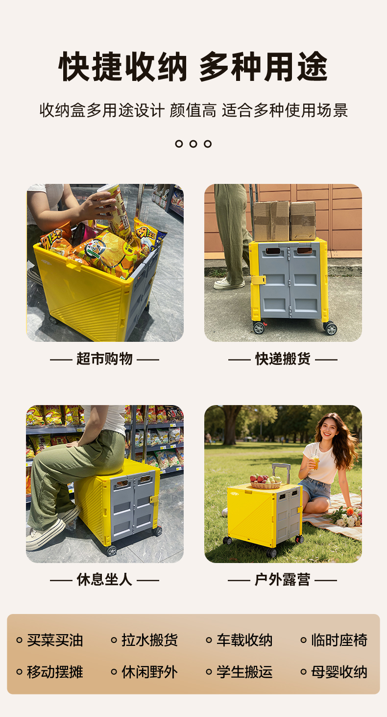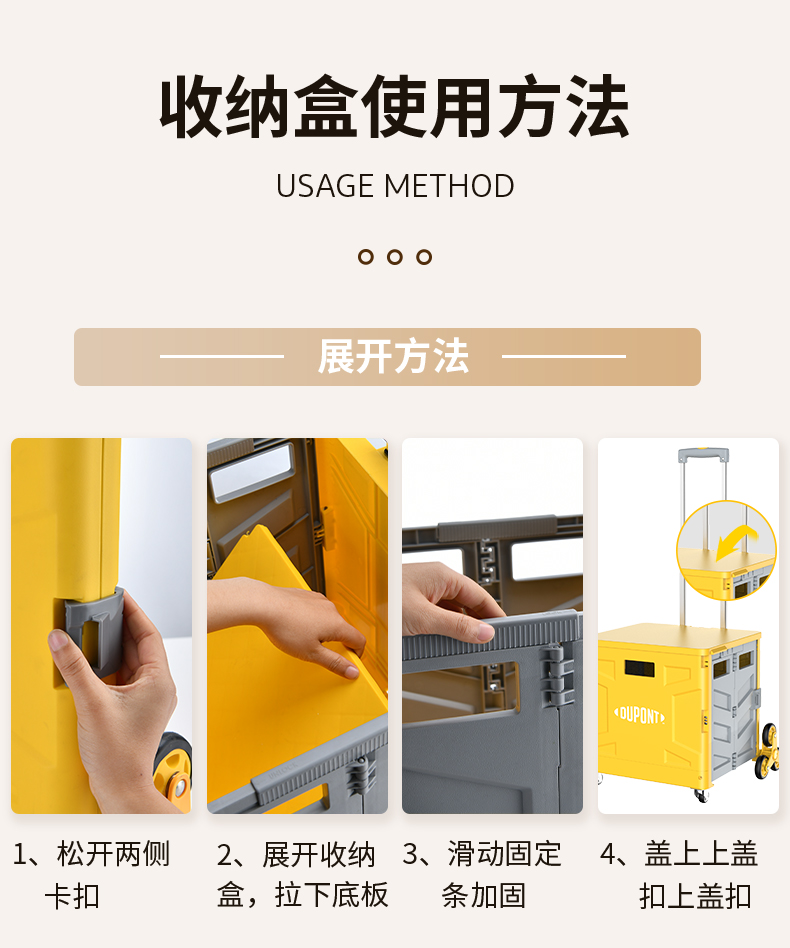 杜邦收纳盒购物车D-BS201B-5Z米色50L(净重4.1kg)